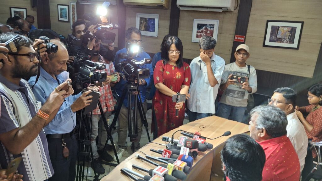 📝 নিজস্ব সংবাদদাতা, Todays Story: ২০২৫ এ দাড়ি পড়ল রাজ্য সরকারের কবিতা উৎসবে। আর তারই পাল্টা সাংবাদিক সম্মেলন করে ২৩ জুন গোলপার্কে রামকৃষ্ণ মিশনে কবি সম্মেলন এর ঘোষণা করল কালচারাল লিটারারি ফোরাম অফ বেঙ্গল। উপস্থিত ছিলেন সংগঠনের সভাপতি জিতেন্দ্র তিওয়ারি, সাধারণ সম্পাদক প্রীতম সরকার সহ সুব্রত রায় ,পার্থ সরকার সহ সংগঠনের অন্যান্য শিল্পী সদস্যরা।