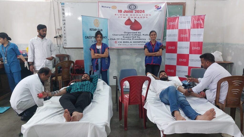 মূলত মানুষের স্বার্থে কলেজের NSS ভলান্টিয়ার, ছাত্র সংসদ- এর সঙ্গে যুক্ত ছাত্র – ছাত্রীরা রক্ত দিলেন। এই মহান উদ্যোগে সামিল হয়েছিলেন সাধারণ ছাত্র – ছাত্রীরাও। তাঁরাও রক্ত দিলেন। এই অনুষ্ঠানকে সফল করতে সহযোগিতার হাত বাড়িয়ে দিল রোটারি ক্লাব অফ ক্যালকাটা প্রেসিডেন্সি 3291, সি কে বিড়লা হাসপাতাল এবং বি এম বিড়লা হার্ট হাসপাতাল।অনুষ্ঠানে উপস্থিত ছিলেন কলকাতা রোটারী ক্লাবের সভাপতি সঙ্গীতা জৈন ,৮৭ নং. ওয়ার্ডের কাউন্সিলর শ্রীমতী মনীষা বোস , চারুচন্দ্র কলেজের ভারপ্রাপ্ত অধ্যাপিকা শ্রীমতী অনুরাধা ঘোষ মহাশয়া ও কলেজের জাতীয় সেবা প্রকল্প বিভাগের প্রোগ্রাম অফিসার অধ্যাপিকা নূপুর রায় সহ বিশিষ্ট জনেরা।